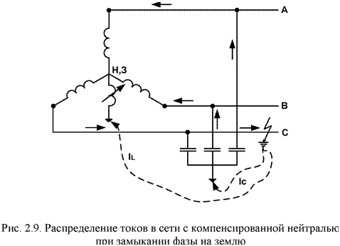 Эти сети также относят к сетям с малым током замыкания на землю (рис. 2.9).