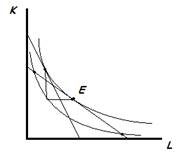 Равновесие производителя достигается в точке, где изокоста проходит по