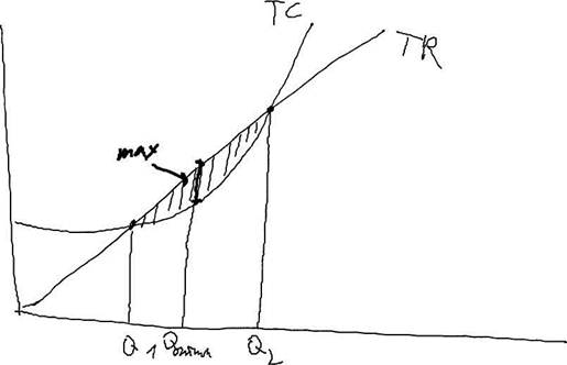 При любом объёме меньше оптимального предельный доход превышает предельные издержки, но максимизируя суммарную прибыль выгодно увеличивать объём производства до тех пор, пока предельный доход превышает предельные издержки.