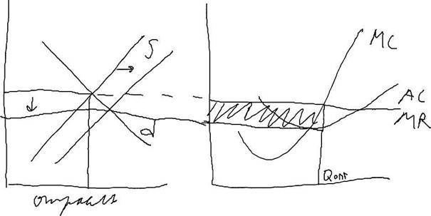 Если же цена опустится настолько, что кривая TR не будет пересекать с VC,