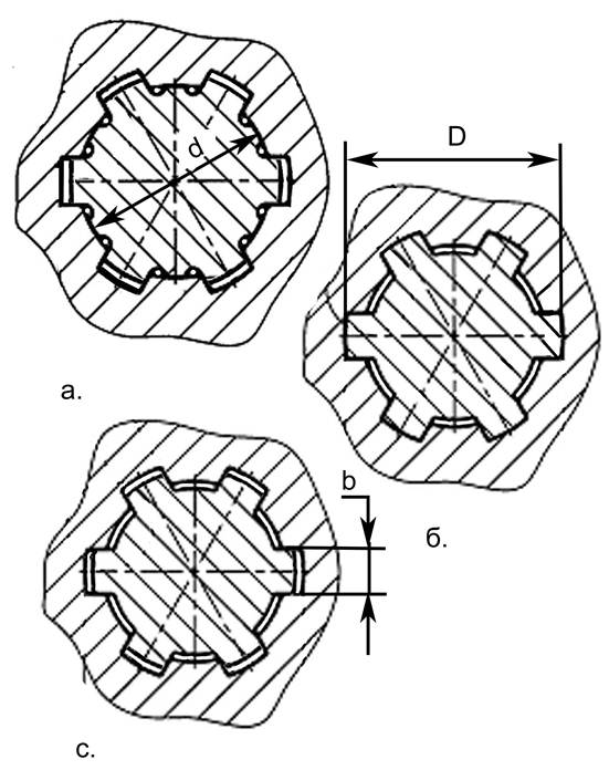 а) по диаметру d, б) по диаметру D, c) по боковым поверхностям b.