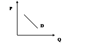 Определяющим фактором рыночного спроса является цена. Чем выше цена, тем меньшее количество товара потребители хотят приобрести, и наоборот. Эту зависимость выражает закон спроса: между ценой товара и объемом его покупок существует обратно пропорциональная связь. Графически взаимосвязь между спросом и ценой представлена на рис. 5.1, где Р – цена товара, Q –количество товара.