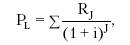 Земля является вечным фактором, срок ее службы бесконечен. Поэтому суммирование начинается с единицы и уходит в бесконечность. В связи с тем что (1 + i)i становится все меньше с увеличением j, количество, добавляемое к получаемой сумме, постепенно приближается к нулю, по мере того как j приближается к бесконечности, и достигает своего предела, когда Rj одинакова за каждый год. Этот предел равен:
