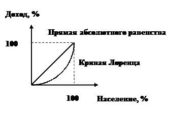 Для определения неравенства в распределении доходов используется кривая Лоренца и коэффициент Джинни (рис. 26.1).