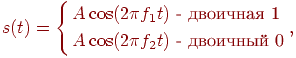 (Binary FSK - BFSK), в которой два двоичных числа представляются сигналами двух различных частот, расположенных около несущей (рис. 1.5б). Результирующий сигнал равен