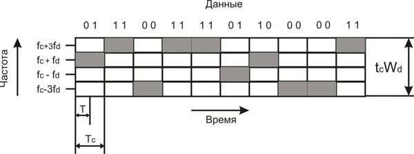 Рис. 1.6. Использование частоты схемой MFSK (M = 4)