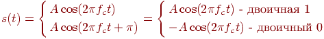 Самой простой фазовой модуляцией является двухуровневая модуляция (Binary PSK, BPSK), где для представления двух двоичных цифр используются две фазы (рис. 1.5в). Получающийся сигнал имеет следующий вид (для одного периода передачи бита):