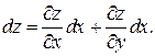 , где x и y – независимые переменные. Тогда полный дифференциал (1-го порядка) функции имеет вид