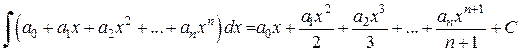 Отметим, что для всякого многочлена степени n существует первообразная и она является многочленом степени (n +1), а точнее