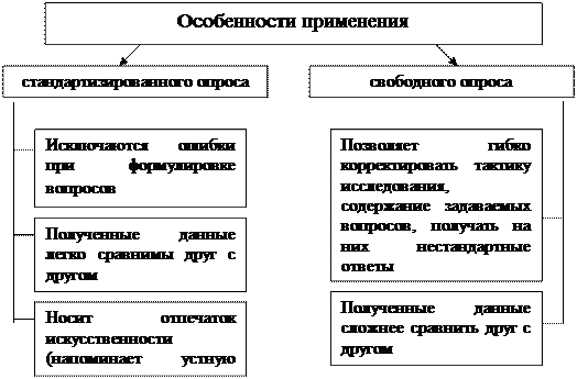 Свободный опрос по форме приближается к обычной беседе и носит естественный, неформальный характер. Он также ведется по определенному плану, и основные вопросы разрабатываются заранее, но в ходе опроса исследователь может задавать дополнительные вопросы, а также видоизменять формулировку запланированных вопросов. Опрос данного типа позволяет достаточно гибко корректировать тактику исследования, содержание задаваемых вопросов, получать на них нестандартные ответы.