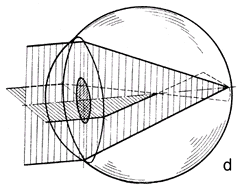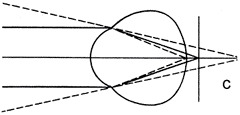 Окружающий нас мир мы видим ясно, когда все отделы зрительного анализатора "работают" гармонично и без помех. Для того, чтобы изображение было резким, сетчатка, очевидно, должна находиться в заднем фокусе оптической системы глаза. Различные нарушения преломления световых лучей в оптической системе глаза, приводящие к расфокусировке изображения на сетчатке, называются аномалиями рефракции (аметропиями). К ним относятся близорукость (миопия), дальнозоркость (гиперметропия), возрастная дальнозоркость (пресбиопия) и астигматизм (рис. 5).