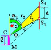Следовательно, возникновение интерференционной картины зависит от степени углового расхождения лучей, освещающих щели S1 и S2.