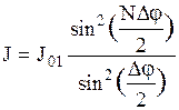 Так как интенсивность J пропорциональна квадрату амплитуды, то интенсивность результирующего колебания