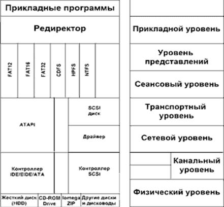 Рис. 7. Классификация интерфейсов жестких дисков в соответствии с семиуровневой эталонной модели протоколов ISO.