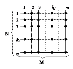 Пересечение шин ki и kj матрицы NxM определяется как точка коммутации. Точкой коммутации (ТК) называется коммутационный элемент обеспечивающий подключение одного входа на один выход. Физический принцип реализации точки коммутации может быть любым: