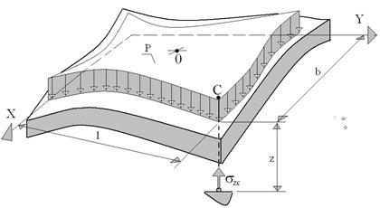 Для равномерно распределенной нагрузки в 1935 г. А. Лявом получено строгое решение в случае прямоугольной площади загружения (рис. 3.8). Деформации этой площади соответствуют деформациям поверхности линейно деформируемого полупространства.