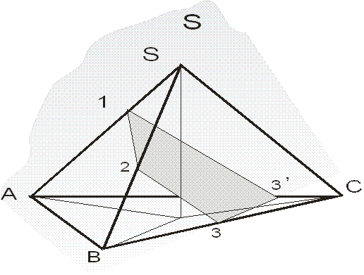 Рисунок 5. Наглядное изображение пересечения пирамиды и плоскости.