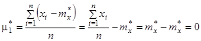 Нетрудно доказать, что для статистических начальных и центральных моментов справедливы те же свойства, которые были выведены для математических моментов. В частности, статистический первый центральный момент всегда равен нулю: