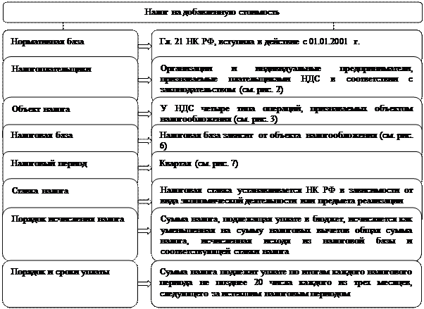 В Российской Федерации НДС согласно действующему законодательству классифицирован как федеральный, т.е. налог устанавливается и вводится в действие федеральным законодательством. НДС обязателен к уплате на всей территории РФ. С 2001 года 100 % поступлений по налогу зачисляется федеральный бюджет. Юридический состав НДС проиллюстрирован на рис. 1.