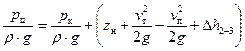 где р 2= р ц – давление жидкости в цилиндре насоса; v 2= v п – скорость движения жидкости в цилиндре, равная скорости перемещения поршня; р 3= р к – давление жидкости в конце нагнетательного трубопровода; v 3= v к – скорость движения жидкости в конечном сечении нагнетательного трубопровода;