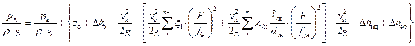 Выражение, стоящее в квадратных скобках представляет собой сумму потерь в местных сопротивлениях и потери по длине. Выполнив преобразование этого выражения, получим:
