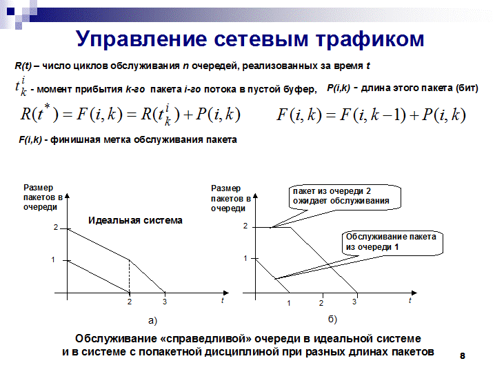 Величина F(i,k) не опреднляет действительное (реальное) время завершения обработки k-го пакета; она служит лишь признаком очередности, в которой будут обслуживаться буферы в пределах данного цикла.