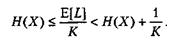 Здесь H(X) представляет собой энтропию множества символов X, a E[L] является средней длиной кода для множества X. В схеме сжатия без потерь H(X) всегда будет нижней границей объема сжатых данных, так как H(X) определяет среднее количество информации, содержащейся в символьном наборе. Наконец, было показано, что эффективность алгоритма сжатия может быть повышена путем объединения символов и одновременного кодирования блоков по К символов каждый. В результате мы получаем следующее неравенство:
