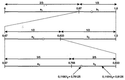 2. Выберем подынтервал, содержащий код, выраженный в виде двоичной дро