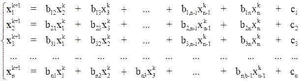 Последняя система представляет собой расчетные формулы метода простой итерации.