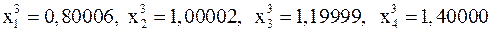 Пример. Применим метод Зейделя для решения системы уравнений из предыдущего примера. Первые шаги полностью совпадают с процедурой решения по методу простых итераций. Проведем теперь итерации методом Зейделя.