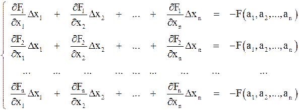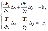 . Проведем разложение левых частей уравнений исходной системы в ряд Тэйлора, ограничиваясь лишь линейными членами относительно приращений: