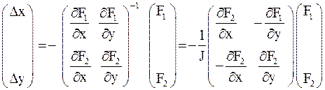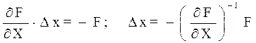 Таким образом, итерационный процесс решения системы нелинейных уравнений методом Ньютона состоит в определении приращений