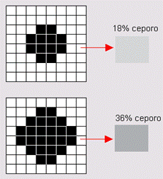 Рассмотрим принципы полутонового растрирования на примере изображений в градациях серого.