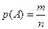 Можно считать, что случаи представляют собой все множество исходов опыта. Пусть их число равно п (число возможных исходов), а при т из них происходит некоторое событие А (число благоприятных исходов).
