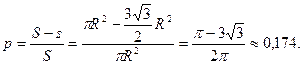 Пример 1. Найти вероятность того, что точка, наудачу брошенная в круг, не попадет в правильный шестиугольник, вписанный в него.