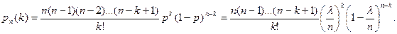позволяет найти вероятность к появлений события А для массовых (п велико) и редких (р мало) событий.