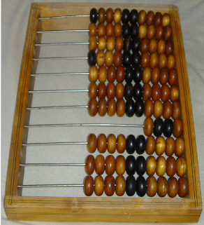 Стержни абака в арифметическом смысле представляют собой десятичные разряды. Каждая костяшка на первом стержне имеет достоинство 1, на втором стержне - 10, на третьем стержне - 100 и т.д. До XVII века счеты оставались практически единственным счетным инструментом.