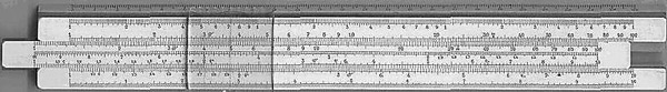 Логарифм - это показатель степени, в которую нужно возвести число (основание логарифма), чтобы получить другое заданное число. Открытие Непера состояло в том, что таким способом можно выразить любое число и что сумма логарифмов двух любых чисел равна логарифму произведения этих чисел. Это дало возможность свести действие умножения к более простому действию сложения. Непер создал таблицы логарифмов. Для того чтобы перемножить два числа, нужно посмотреть в этой таблице их логарифмы, сложить их и отыскать число, соответствующее этой сумме, в обратной таблице - антилогарифмов. На основе этих таблиц в 1654 году Р. Биссакар и в 1657 году независимо от него С. Партридж разработали прямоугольную логарифмическую линейку: основной счетный прибор инженера до середины XX века (рис. 7.2).
