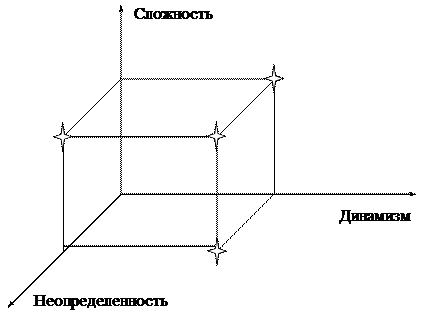 Если ограничиться только тремя характеристиками, то для наглядности можно изобразить основные классы решаемых задач в трехмерном пространстве в виде вершин куба (рис. 7).