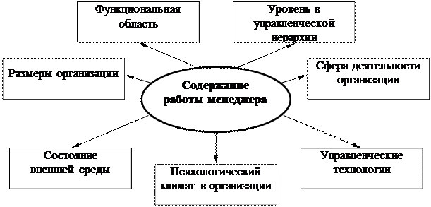 Основные факторы, определяющие содержание работы менеджера, представлены на рис. 16.