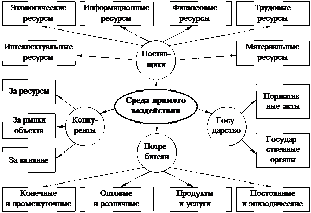 Любая организация функционирует в определенной специфической внешней среде и, как следствие, сталкивается с рядом воздействий. Анализ среды прямого воздействия включает рассмотрение отдельных ее элементов и их взаимодействия.