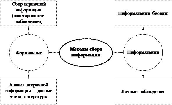 Далее осуществляется сбор внутренней и внешней (по отношению к организации) информации. При этом используются формальные и неформальные методы сбора (рис. 36).