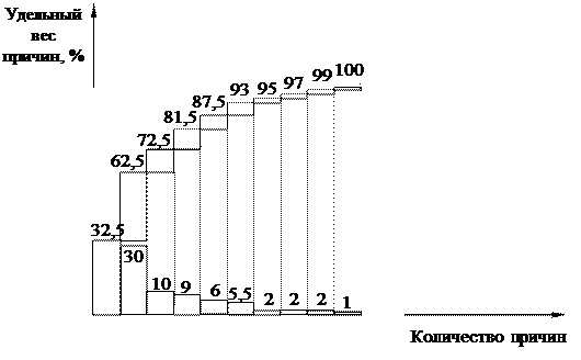 Применение диаграммы Парето позволяет сделать вывод, что проблему можно было лучше всего решить, концентрируясь на наиболее существенных причинах.