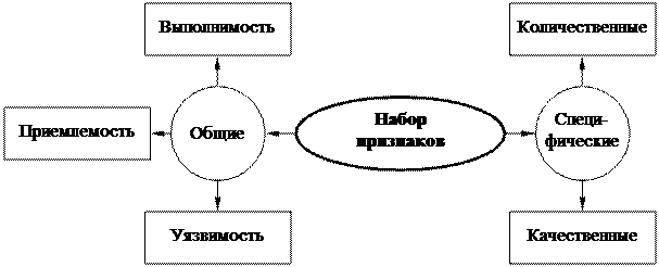 Как правило, всегда имеется несколько признаков решения. Существует сравнительно немного реальных решений, которые могут быть оценены при помощи единственного признака. Не существует «универсального» списка признаков оценки. Можно говорить о системе признаков, включающих две подсистемы общих и специфических признаков (рис. 59).