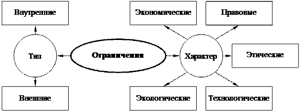 Внешние ограничения – существование противодействующих факторов, например: нормативы, законодательные ограничения, воздействие конкурентов и т.д.