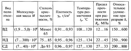 Полиэтилены НД и СД близки по своим свойствам. Их более высокая кристалличность, а также плотность, прочность и температура размягчения по сравнению с полиэтиленом ВД обусловлены меньшей разветвленностью полимерной цепи. Однако полиэтилены НД и СД более склонны к старению, в то время как полиэтилен ВД устойчив к растворам кислот, щелочей, солей, органическим растворителям и разрушается только под действием концентрированной азотной кислоты.