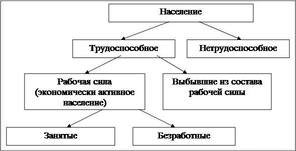 - выбывшие из состава рабочей силы – трудоспособное население, не имеющее работы и активно ее не ищущее (студенты, домохозяйки), а также те, кто отчаялся найти работу и прекратил ее поиски.