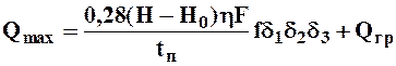 где 0,28 - коэффициент размерности; Н - слой осадков за дождь (расчетный) в мм; Н0 - начальный слой осадков, идущий на увлажнения почвы в мм; h - коэффициент стока; F - площадь бассейна в км2, tп - продолжительность подъема паводка в часах, принимаемая равной времени добегания t; f - коэффициент формы гидрографа, определяемый по соотношению