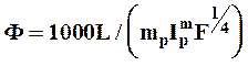 где L и F - длина реки от наиболее удаленной точки до рассматриваемого створа, км, и площадь водосбора, км2; mp и m - параметры русла, определяемые по соответствующей таблице СНиП 2.01.14-83 или "Пособия по определению расчетных гидрологических характеристик. - Л.: Гидрометеоиздат, 1984." в зависимости от характеристик русла и поймы; Ip - средневзвешенный уклон русла реки, %0; n4 - коэффициент редукции модуля максимального мгновенного расхода воды с увеличением времени руслового добегания, определяют по той же таблице, что и n3.