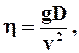 где g -ускорение силы тяжести; D - диаметр частиц и v - скорость течения.